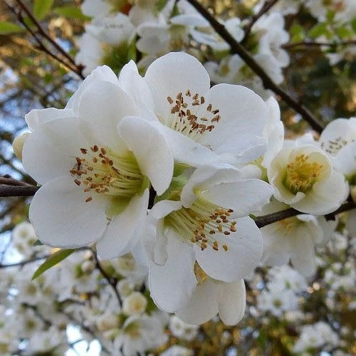 APPEARANCE : Native to Asia, this fast-growing late winter to early spring-flowering shrub has snow-white cup-shaped flowers on bare spiny branches.