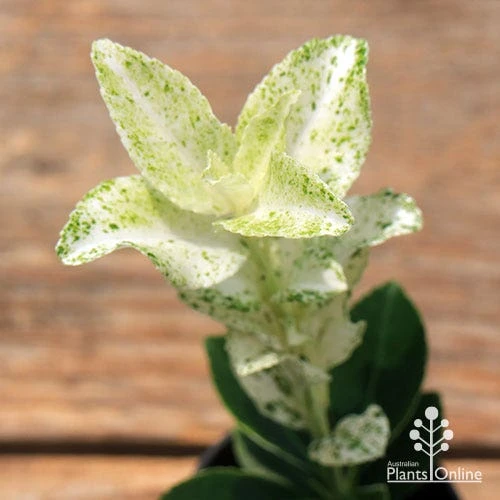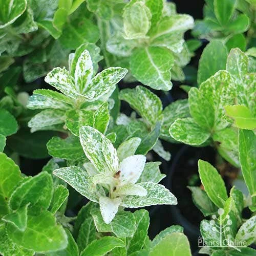 DESCRIPTION: Hardy evergreen compact shrub with dark green older foliage and pure white new tips which mature to white splashes on older leaves. Upright and dense.