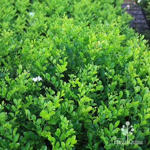 APPEARANCE : Ozbreed variety. Low maintenance evergreen hedging or screening shrub with small oval fresh green leaves and dense foliage. The leaf and flower size is midway between Min a Min (small) and paniculata (large)